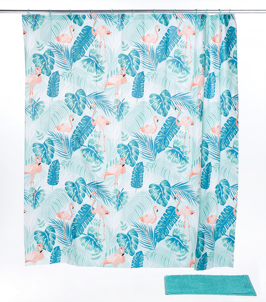 PANA® 3-teiliges Badezimmerset (Duschvorhang, Ringe, Badematte)