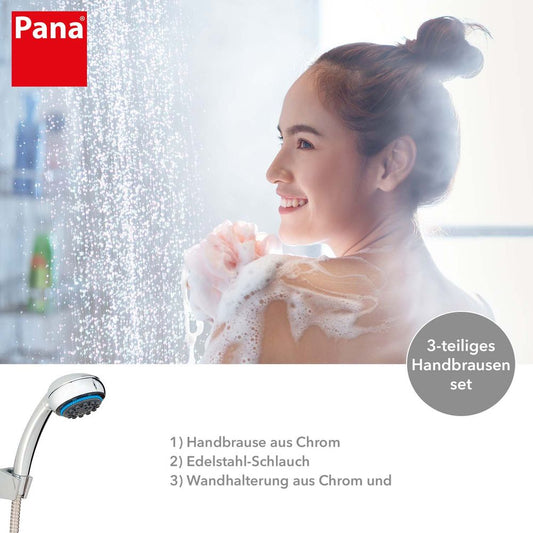 PANA® 3-tlg. Handbrause-Set mit Schlauch,Wandhalterung und Duschkopf • 5 Stahlfunktionen