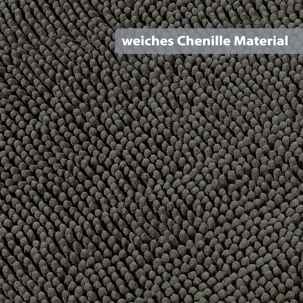 - Material: aus 100% hochwertigem Microfaser Chenille; Rückseite: rutschhemmend, mit bodenschonendem PVC-Belag