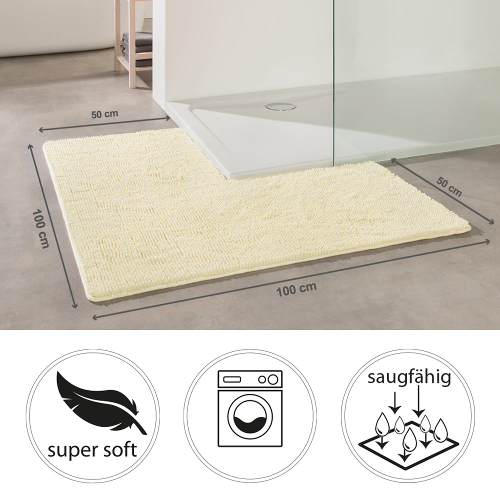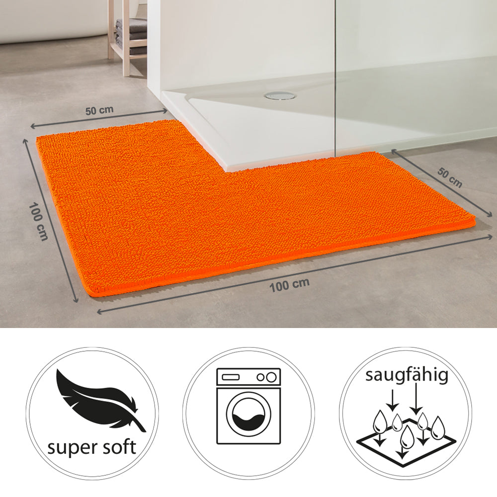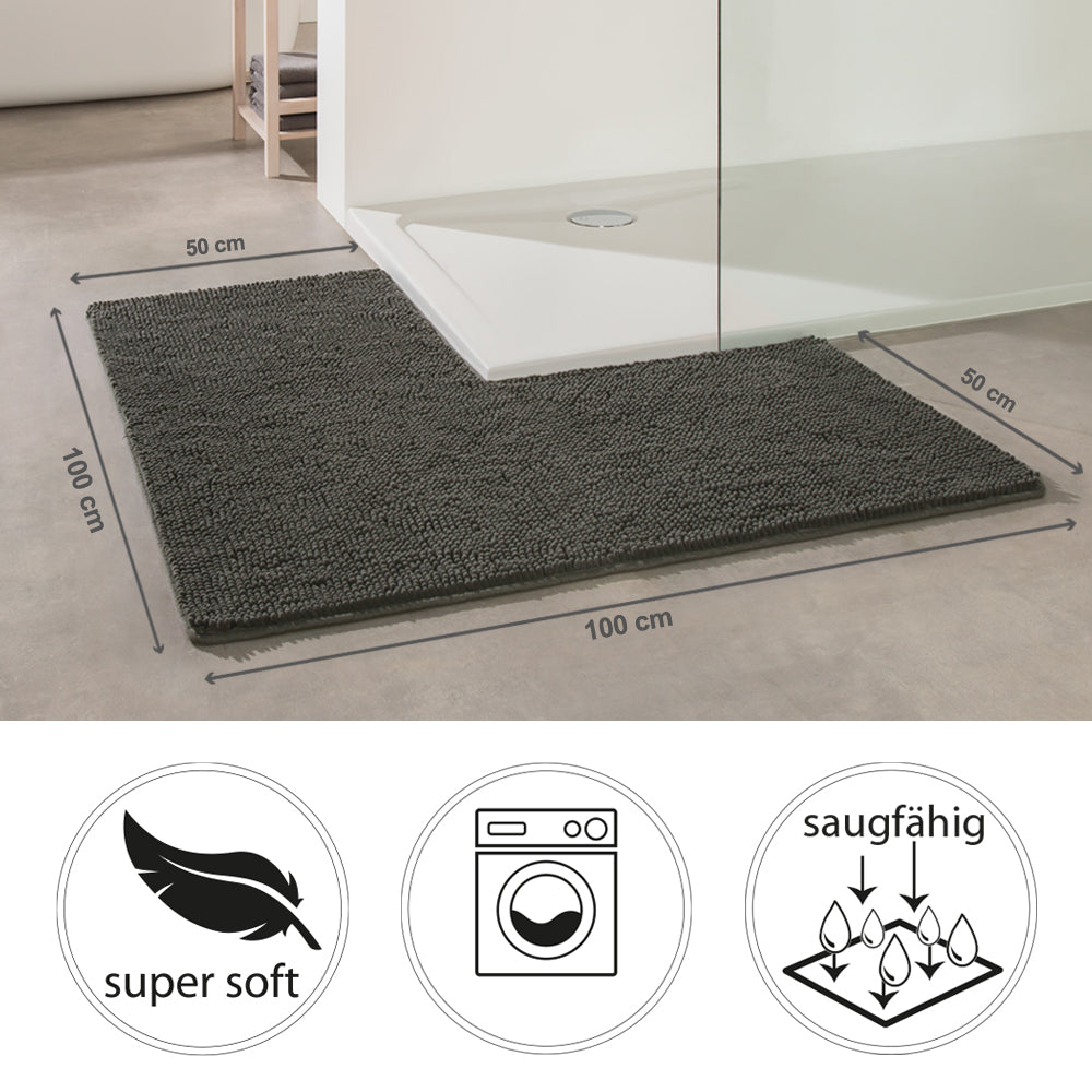 - SAUGSTARKE FLAUSCHIGE OBERFLÄCHE: Der flauschige und saugfähige Hochflor Chenille erstreckt sich über den gesamten Badvorleger und bietet einen herausragenden Komfort. So trocknet der rutschfeste Badeteppich schnell und sorgt für ein weiches, kuscheliges Gehgefühl.