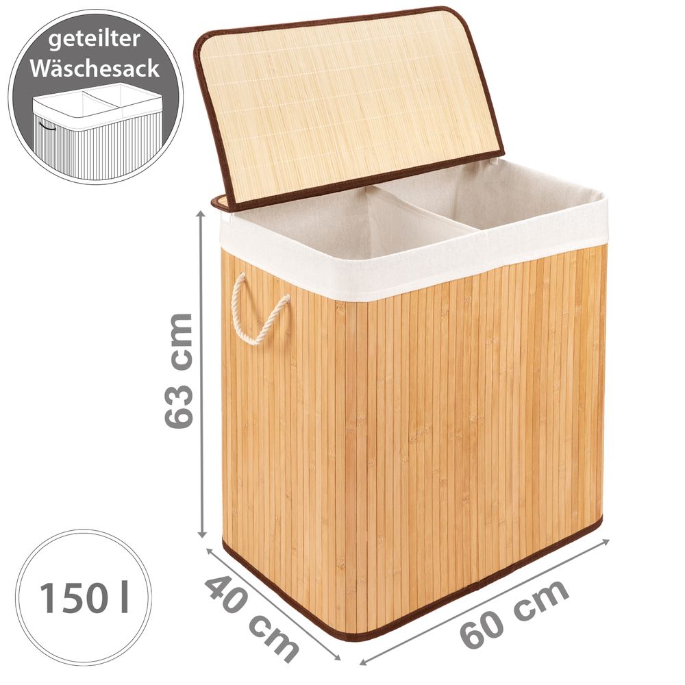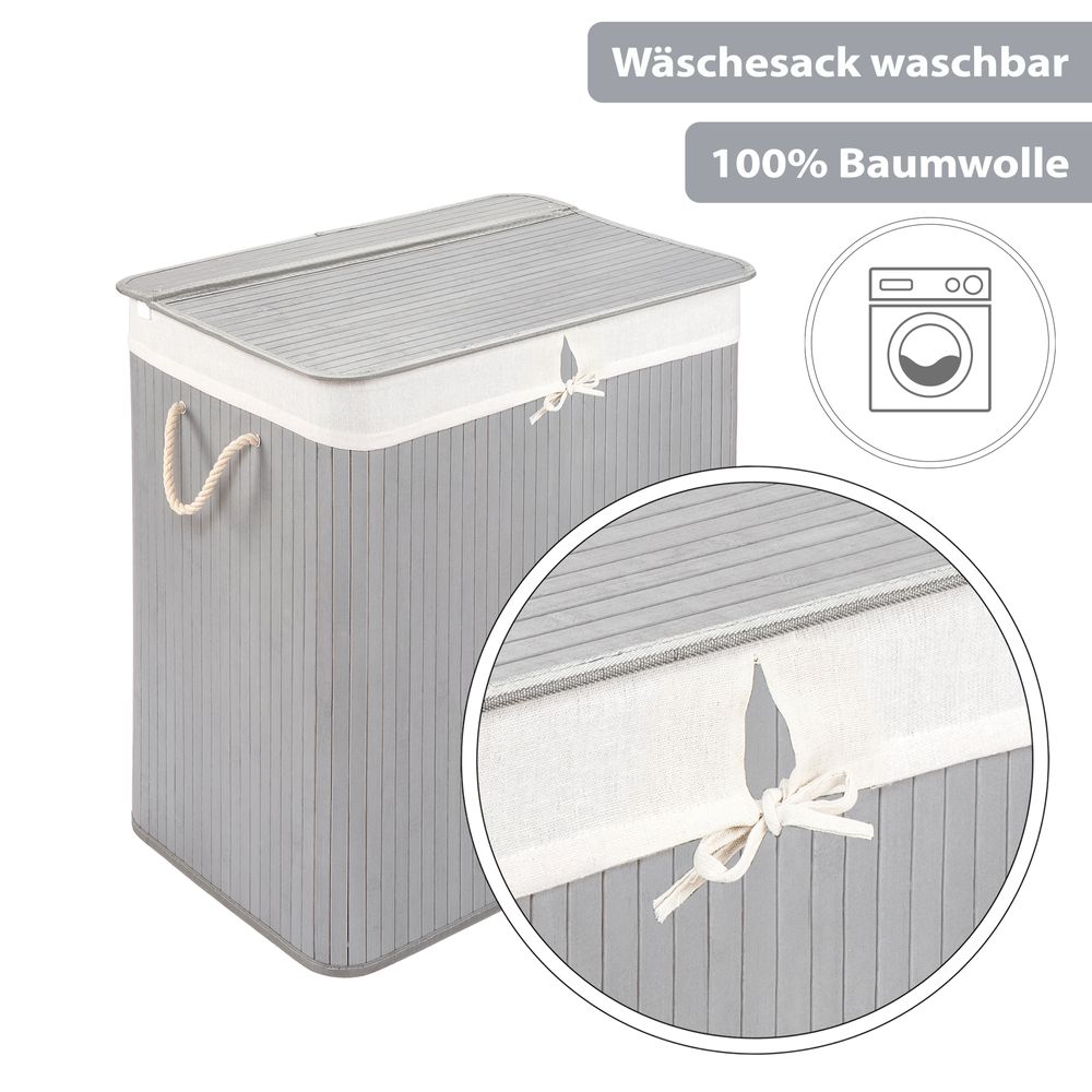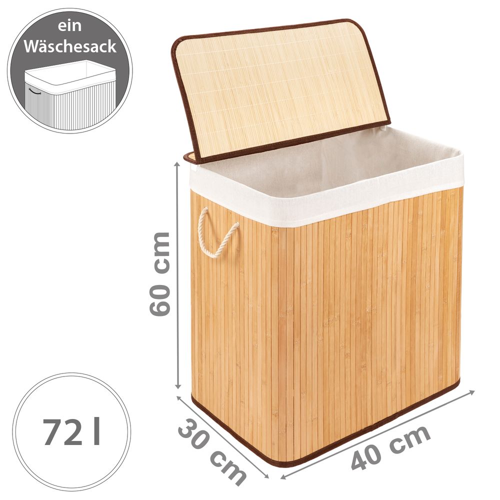PANA ECO Bambus Wäschekorb mit Deckel mit herausnehmbaren Wäschesack