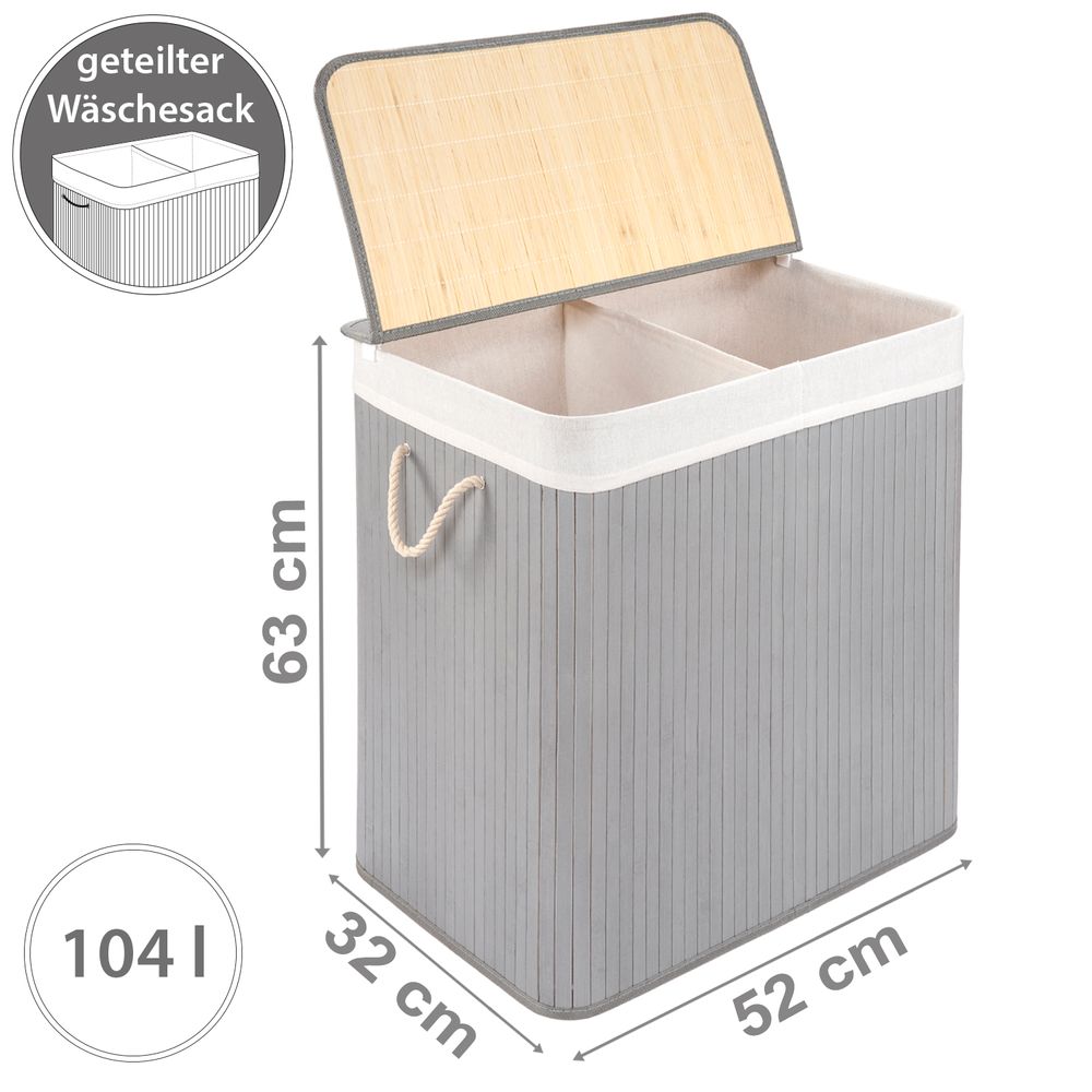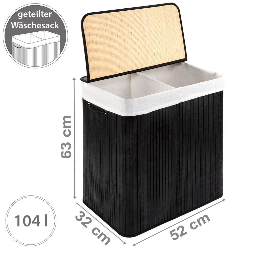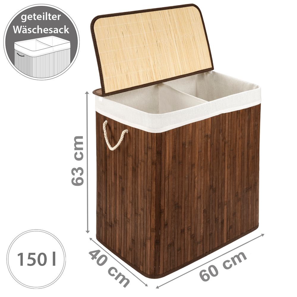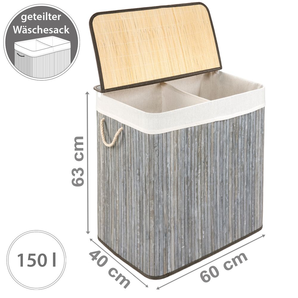 PANA ECO Bambus Wäschekorb mit Deckel mit herausnehmbaren Wäschesack
